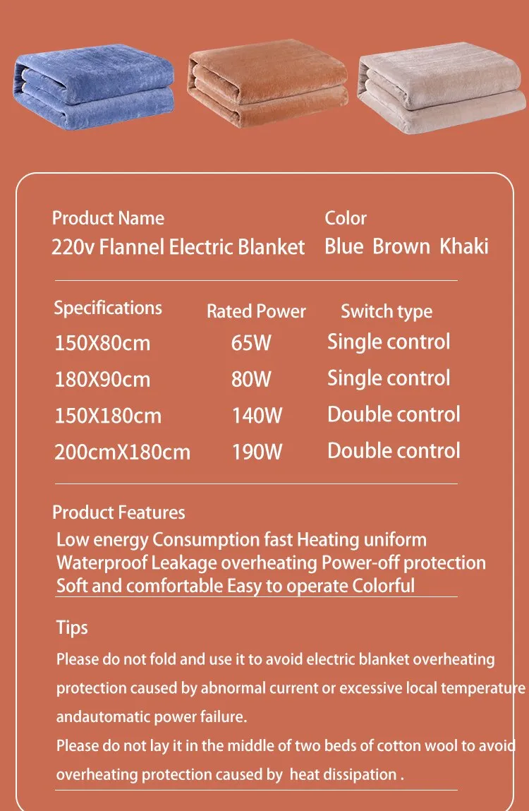 220V Coral Fleece Throw Heated Electric Sheet Thickenthermostat Electric Blankets Security Electric Heating Blanket Mattress